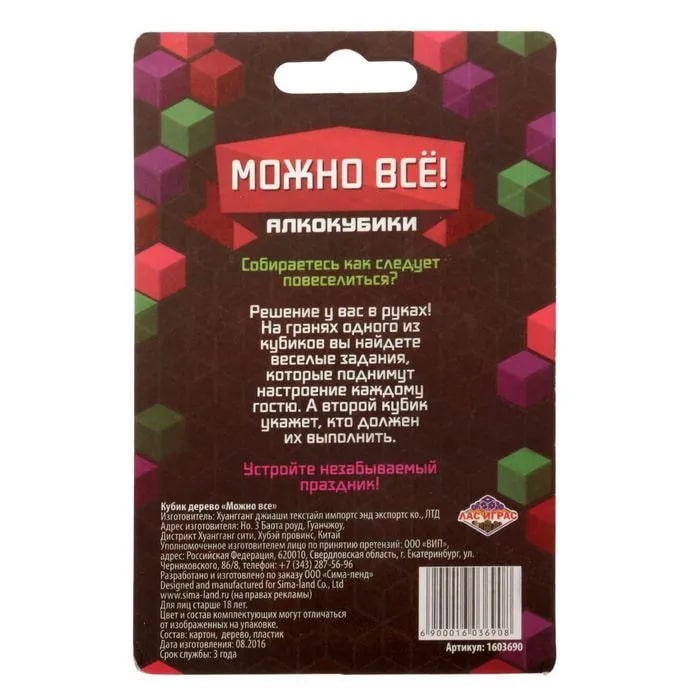 Купить кубик "можно все", алкокубики для принятия решений от 60 руб. с доставкой до пункта выдачи в Курильске. Интернет магазин ДекаМаркет. Оплата при получении.